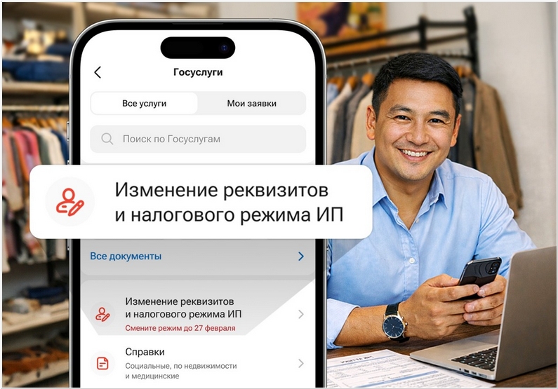 С 1 января 2026 года в Казахстане вступил в силу новый Налоговый кодекс. Он предусматривает один общеустановленный порядок налогообложения и три специальных налоговых режима (СНР): 1. для самозанятых; 2. на основе упрощенной декларации; 3. для фермеров. Те, кто хочет перейти на специальный налоговый режим на основе упрощенной декларации, должны подать уведомление о применяемом режиме налогообложения до 1 марта 2026 года. В случае неподачи такого уведомления налогоплательщики будут переведены на общеустановленный порядок. Поменять налоговый режим можно быстро и просто в приложении Kaspi.kz (в сервисе Госуслуги). После этого информация обновится в базе данных госорганов в течение 24 часов. Вам придёт сообщение о смене налогового режима в приложении Kaspi.kz. Дополнительных обращений в налоговые органы не требуется