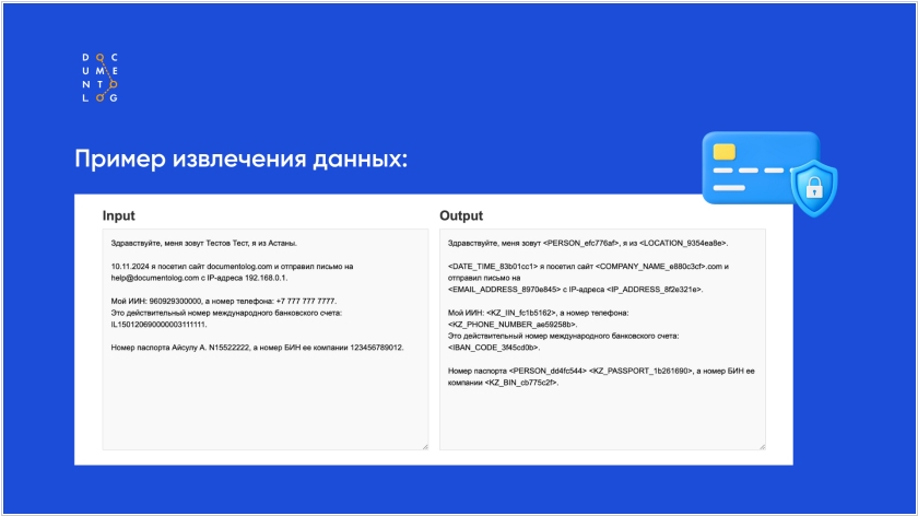 В системе электронного документооборота Documentolog реализован широкий ИИ функционал, который снимает с сотрудников рутинные задачи (перевод текстов документов на другие языки; ИИ-ассистент для подготовки ответов и документов, интеллектуальный поиск и анализ содержания документов, анализ голосовых поручений, формирование протоколов. Но многие компании с опаской относятся к использованию открытых ИИ-сервисов в бизнес-процессах. У бизнеса возникал резонный вопрос: «А что будет с моими данными? Они уйдут в сеть? Станут доступными кому-то ещё?» . Поэтому Documentolog сделал использование LLM безопасным для бизнеса. Теперь вся персональная информация автоматически обезличивается перед передачей в сторонние LLM. На обработку уходит только «чистый» текст - ваши данные зашифрованы. ChatGPT, Gemini и другие модели не могут обучаться на документах.