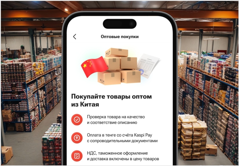 Kaspi.kz запустил новый онлайн-сервис «Оптовые покупки», который помогает предпринимателям заказывать товары из Китая с проверкой качества, полным пакетом официальных документов и оплатой в тенге. Сервис доступен в приложении Kaspi Pay. Заказ можно оформить в несколько кликов, а весь процесс - оплата, таможенное оформление и доставка до двери - берет на себя Kaspi.kz. При необходимости можно заказать крупные партии с учетом индивидуальных требований. Благодаря официальному ввозу и документам предприниматели могут без лишних рисков реализовывать закупленные товары - в рознице, онлайн, через любые маркетплейсы и торговые - и спокойно вести бухгалтерский и налоговый учет.