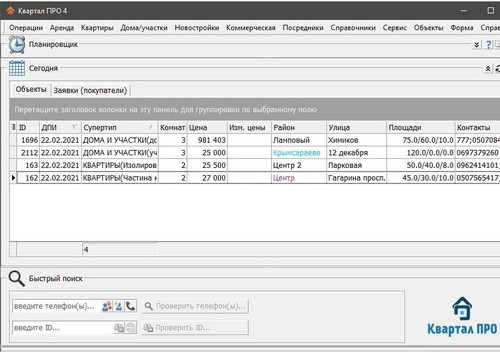 Бесплатная программа учета недвижимости для риэлторов (CRM), позволяющая автоматизировать работу, как частного риэлтора, так и крупного агентства недвижимости, выполнять учет всех видов и типов риэлторской деятельности: учет объектов недвижимости, покупателей, истории звонков и многое другое.